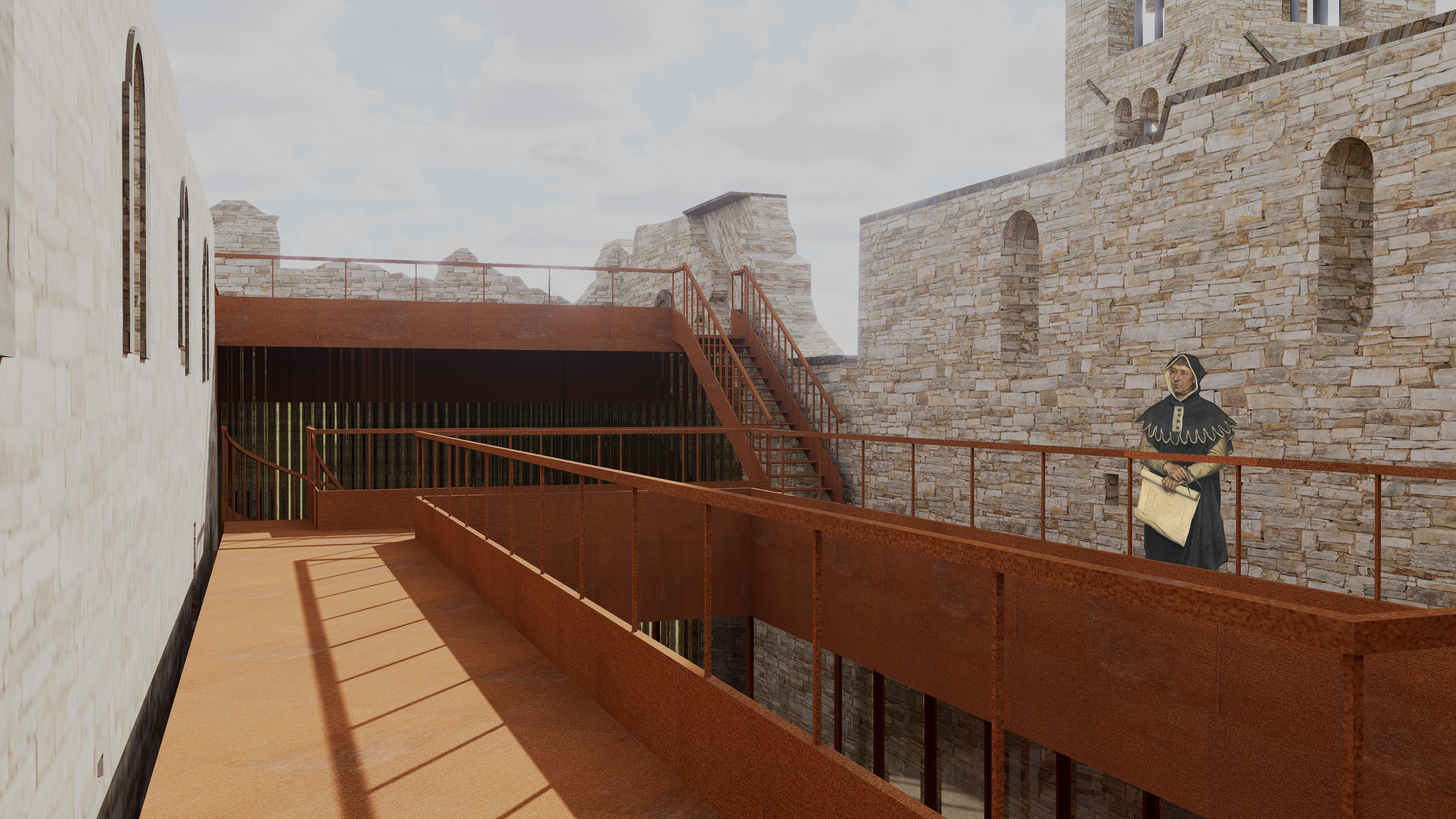 Ce projet fût réalisé dans le cadre d'un concours visant à investir les ruines d'une abbaye dans l'Ouest de l'Italie. Le programme que nous avions mis en place comportait une salle modulable, une partie méditative, ainsi qu'une partie communautaire avec de sanitaires et une cuisine.